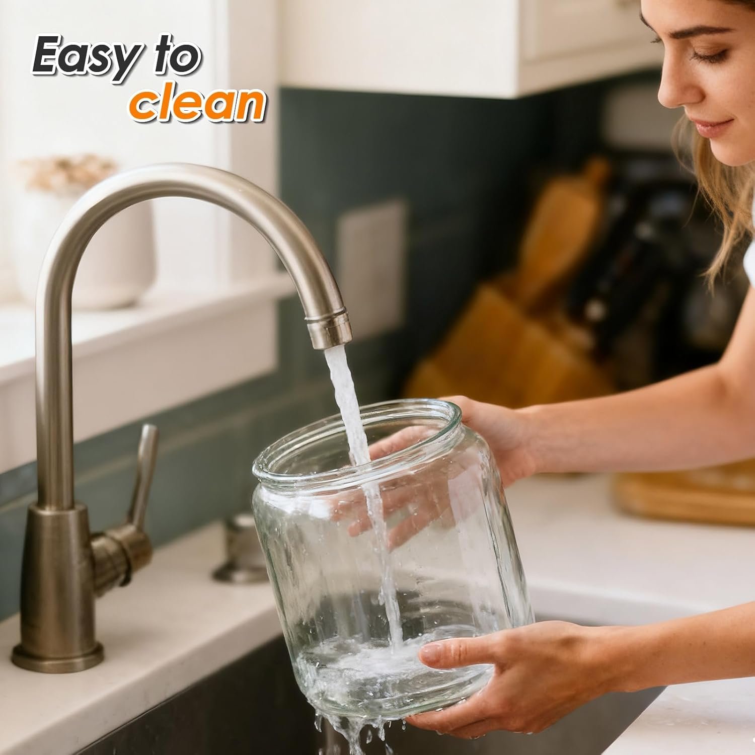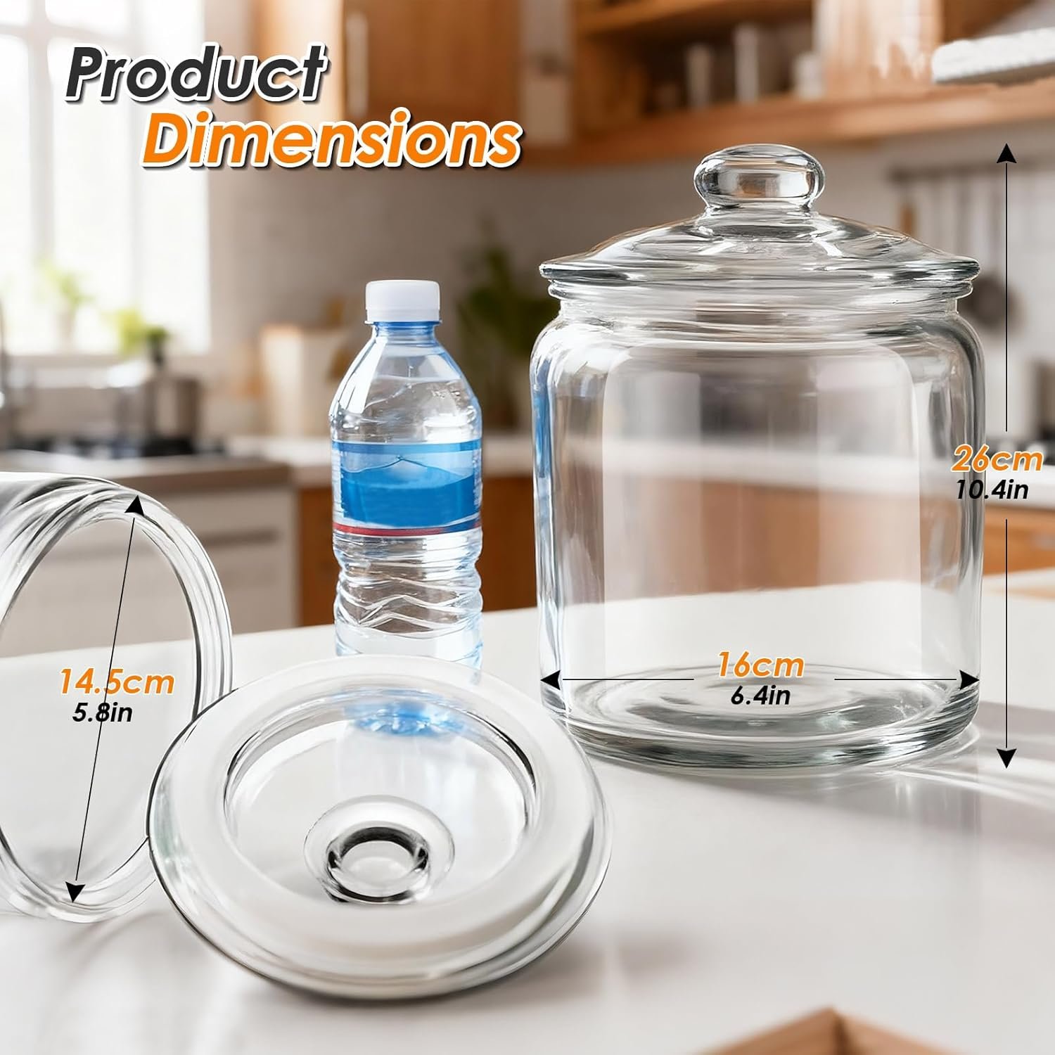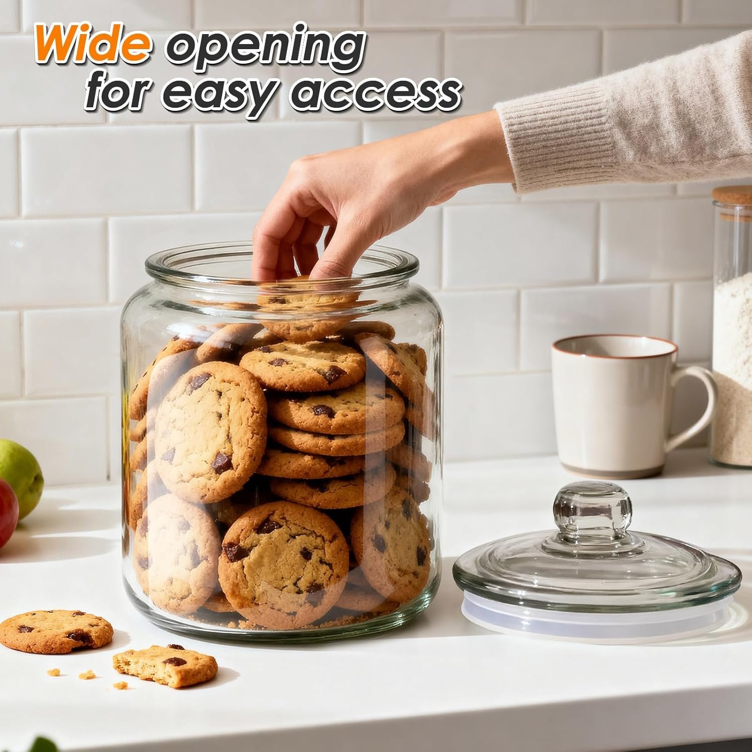Wide Mouth Design:The spacious large mouth design is a great feature of glass storage jars, the 6-inch wide mouth allows your hands to easily reach or store food. No more worrying about food not fitting in or getting stuck when you take it out. When cleaning, your hand can reach completely into the bottom of the glass jar, making your cleaning job even easier.