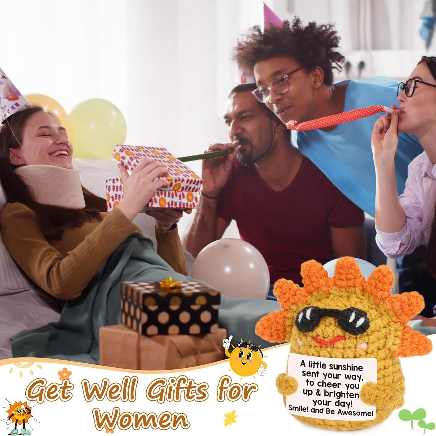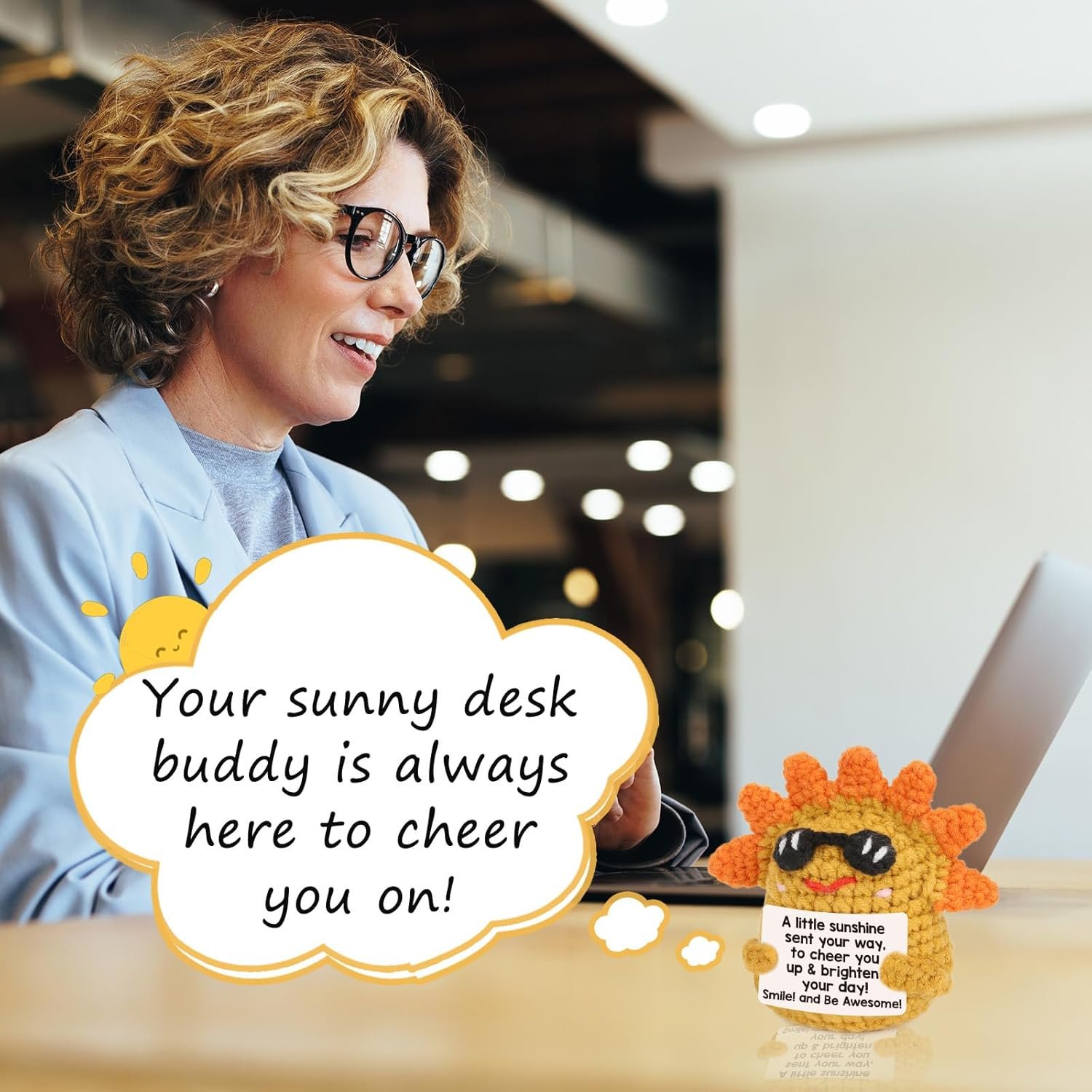 Encouragement Gifts for Women: The sunshine holding a card in its hands: “A little sunshine sent your way, to cheer you up & brighten your day!”; Whenever you feel tired, it serves as a gentle reminder to stay optimistic
