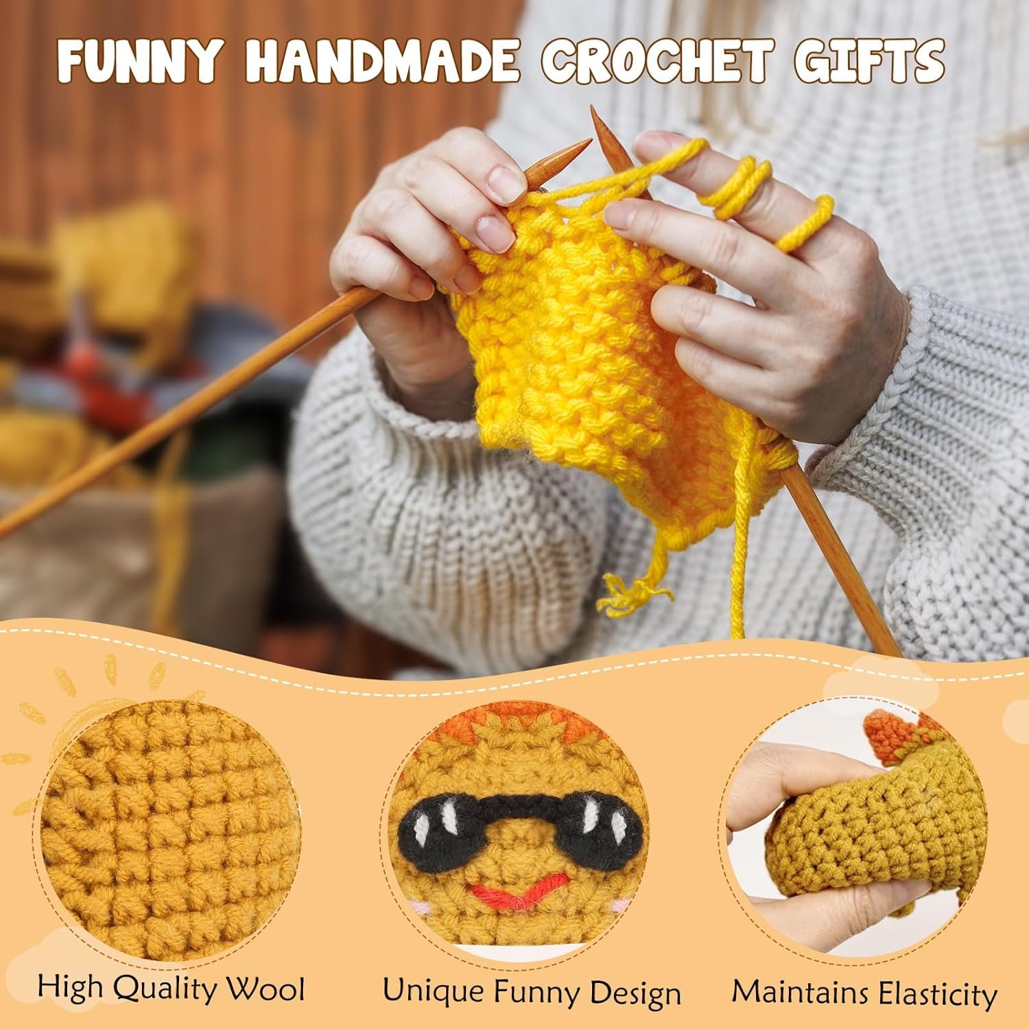 Stress Relief Gifts: Made from high-quality and soft woolen yarn, this positive crochet animal is gentle and non-irritating; Its durable design ensures it remains cute and in perfect shape over time; Each sunshine has its unique design