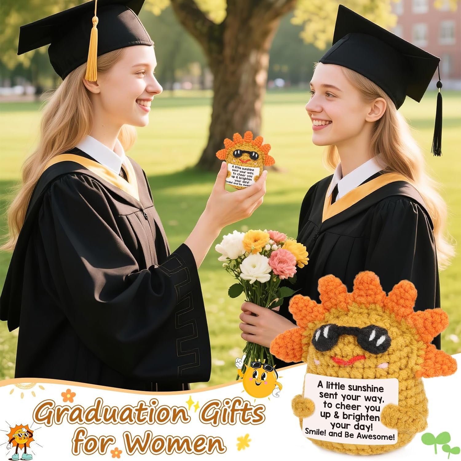Best College Graduation Gifts 2025: The funny emotional sunshine crochet gift measuring 3.74 x 4 x 2.17 inches, fits perfectly in pockets or backpacks; Its round, plush, and irresistibly soft design provides stress relief, making it a comforting gift