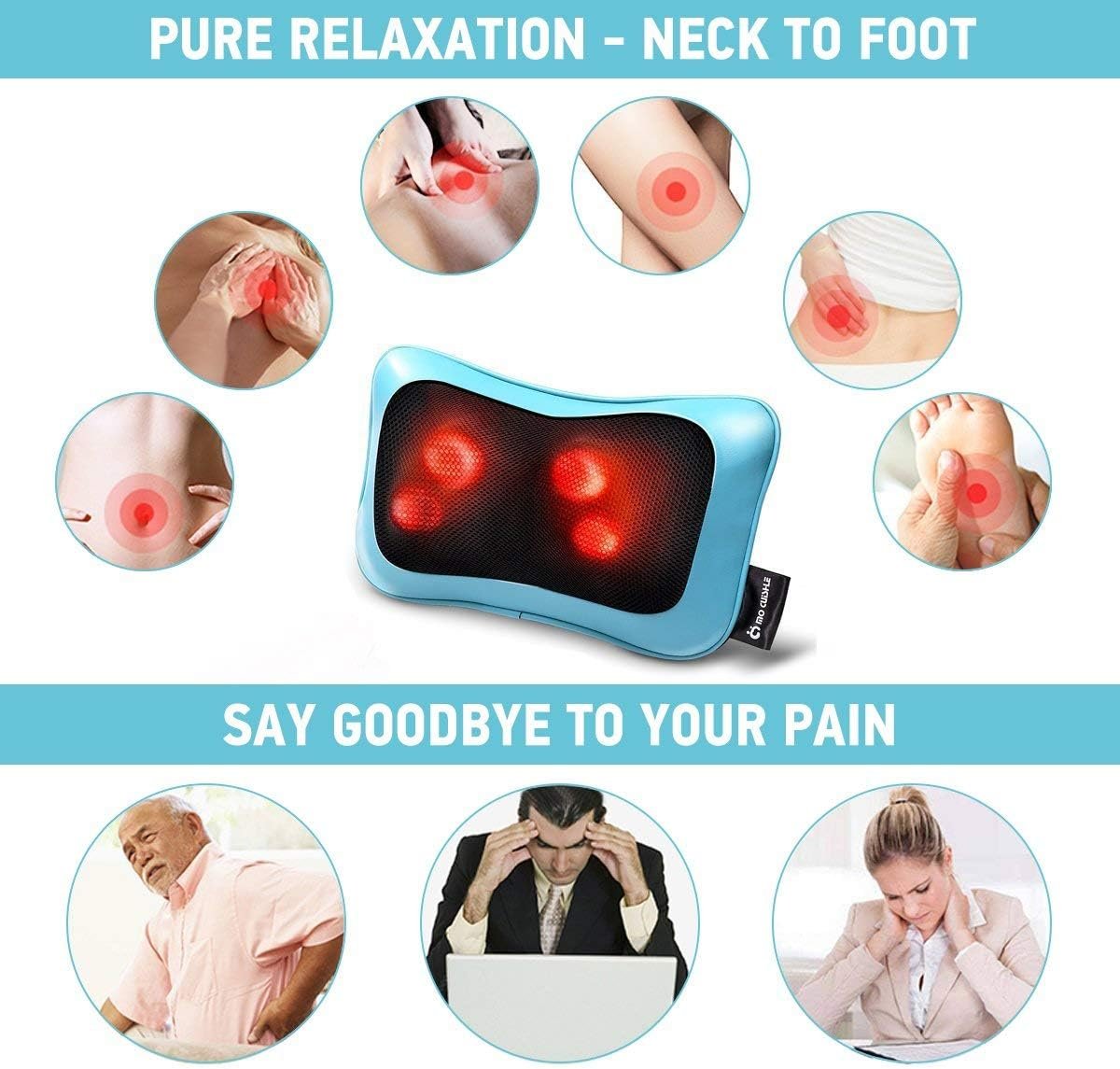 ❥SUITABLE FOR FULL BODY: We’re always concerned about the health and well-being of you and your family. Body massager mimicking the vigorous deep kneading and penetration of a real massage therapist hands works all over your body, perfect for massaging back, neck, shoulder, belly, calf, thigh, foot. It provide a deep rhythmic massage for relieving your aching, tense and knotted muscles from your neck to your feet