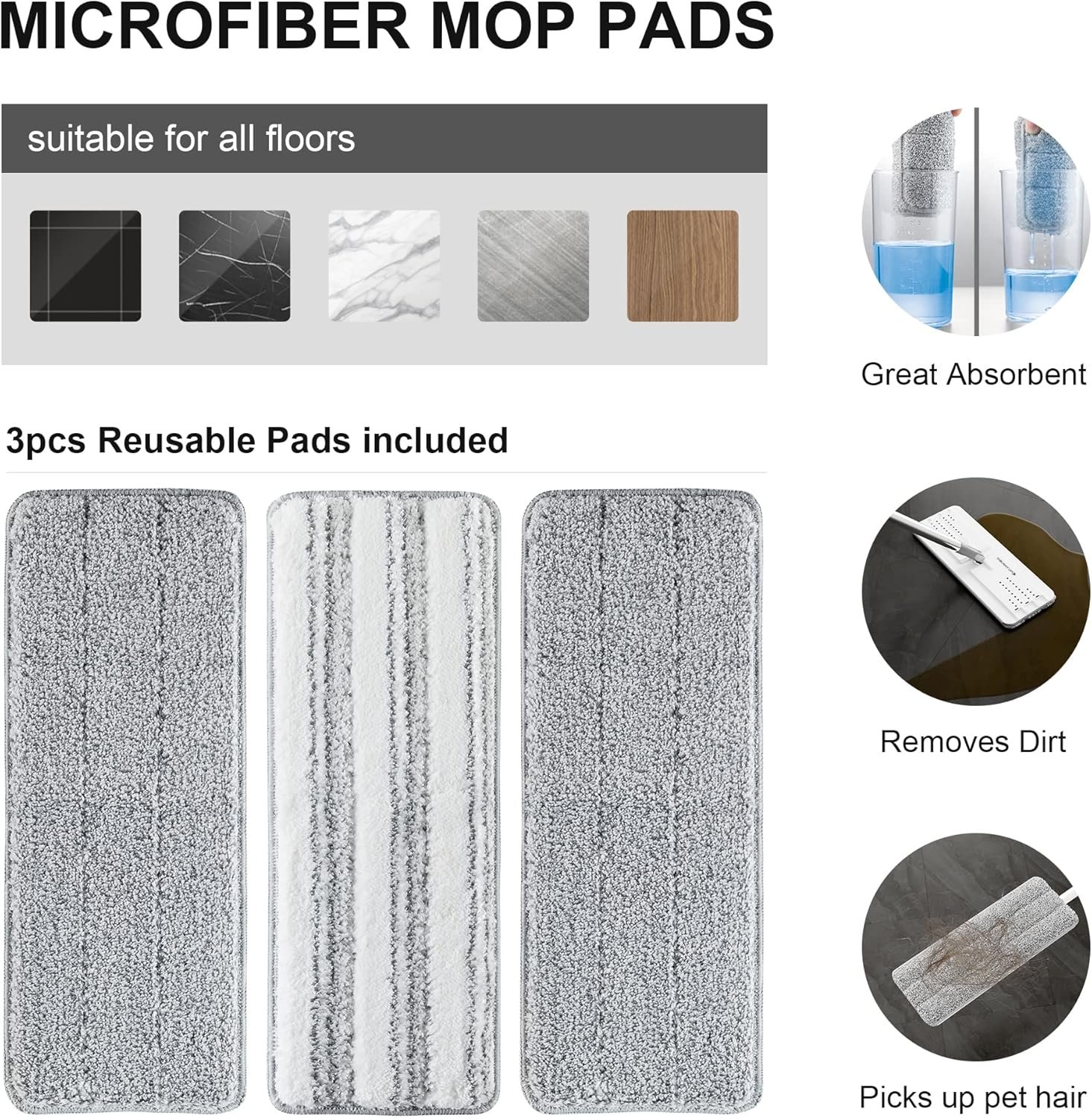 [MICROFIBER PADS] With 3pcs microfiber pads for floor cleaning. Super absorption let you easily do any wet or dry cleaning.