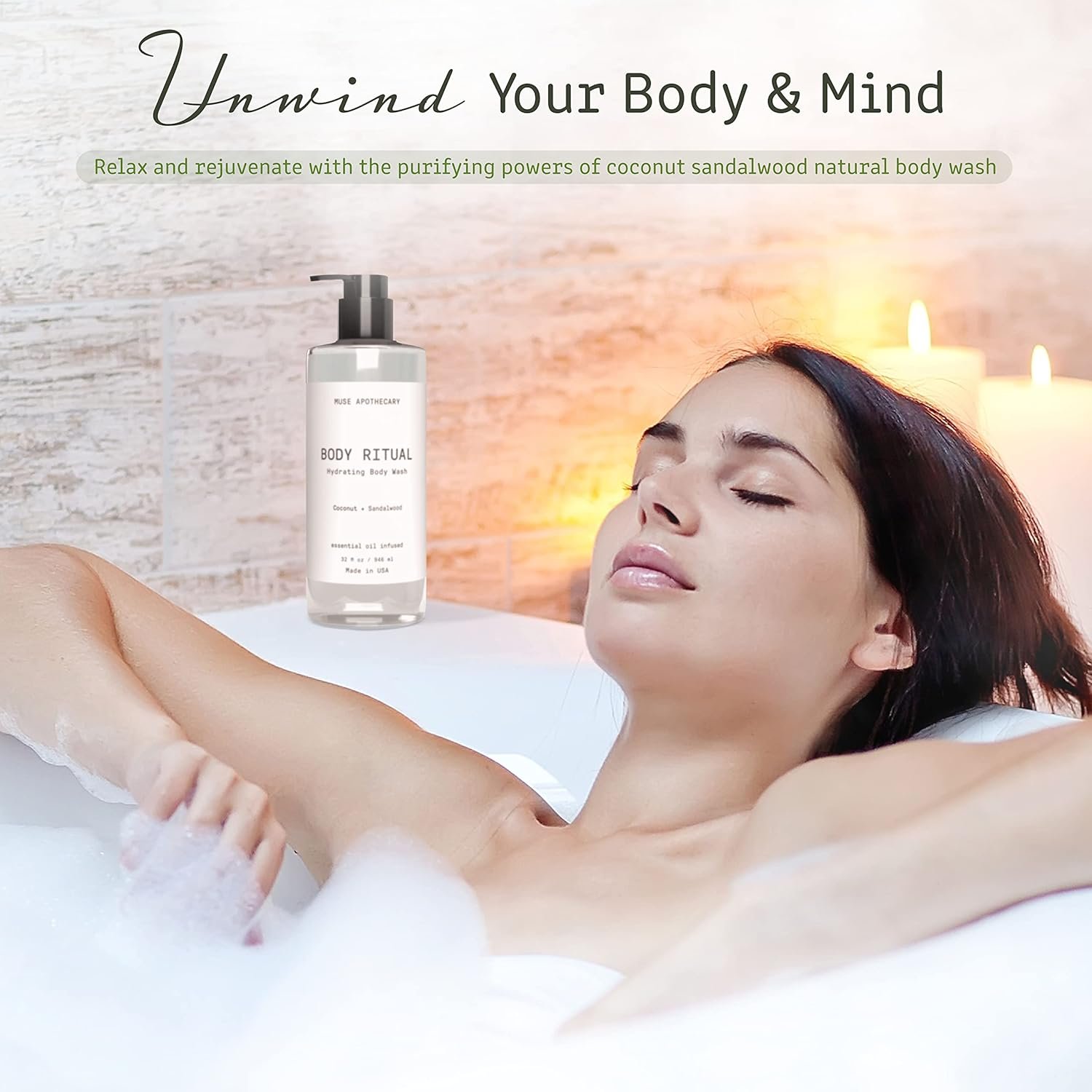 The Finest Ingredients — Harness the power of nature to balance your well-being. This premium sandalwood coconut oil womens body wash is infused with essential oils for a delightful fragrance. Wash away dirt and grime while locking in moisture, all without leaving any residue behind. Eliminate impurities and soften your skin each and every time you bathe with this luscious shower and bath gel