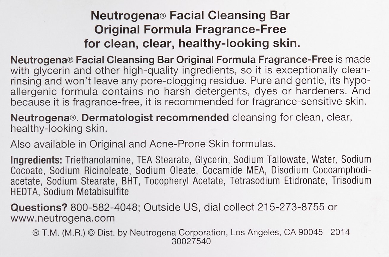 3.5-ounce Neutrogena Facial Cleansing Bar in Original Fragrance-Free Formula for gentle, daily facial cleansing from a dermatologist-recommended skin care brand