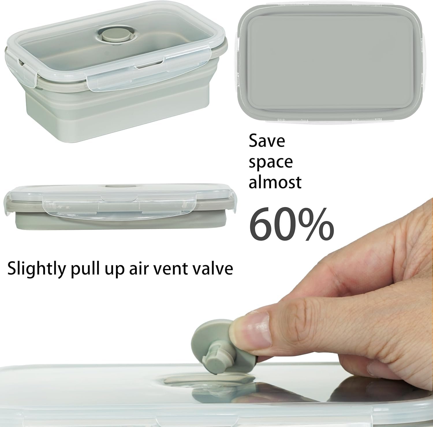 👌Practical, space-saving design – Say goodbye to bulky containers! These beautiful collapsible containers shrink by over 50% when not in use, perfect for saving space in your kitchen cabinets. And with airtight lids to keep your food fresher for longer, they also have built-in air vents for easy microwaving.