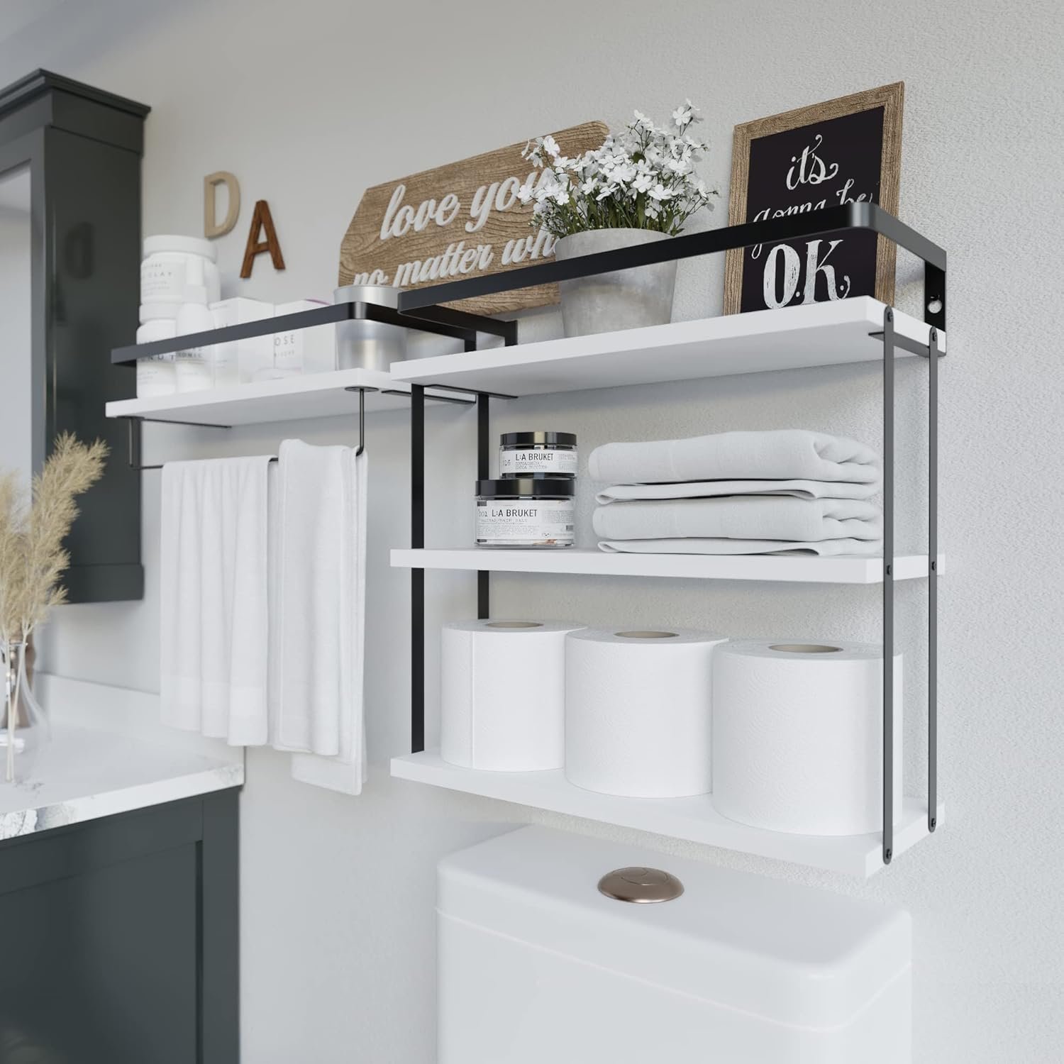 Most Value Set with Better Performance – Come with 4 pack wooden boards with 4 tier storage space. You can store extra toilet tissue as you like, and save up the money for buying a new board. Take this new design shelf back home and it’s time to say goodbye to the display pressure!