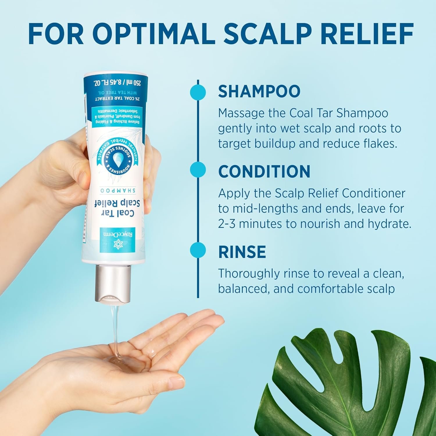 Roycederm Coal Tar Antidandruff Shampoo & Conditioner Set: 2% Coal Tar Extract Scalp Relief Shampoo for Psoriasis, Dandruff & Seborrheic Dermatitis – Soothes Itchy Scalp, Hydrates Hair