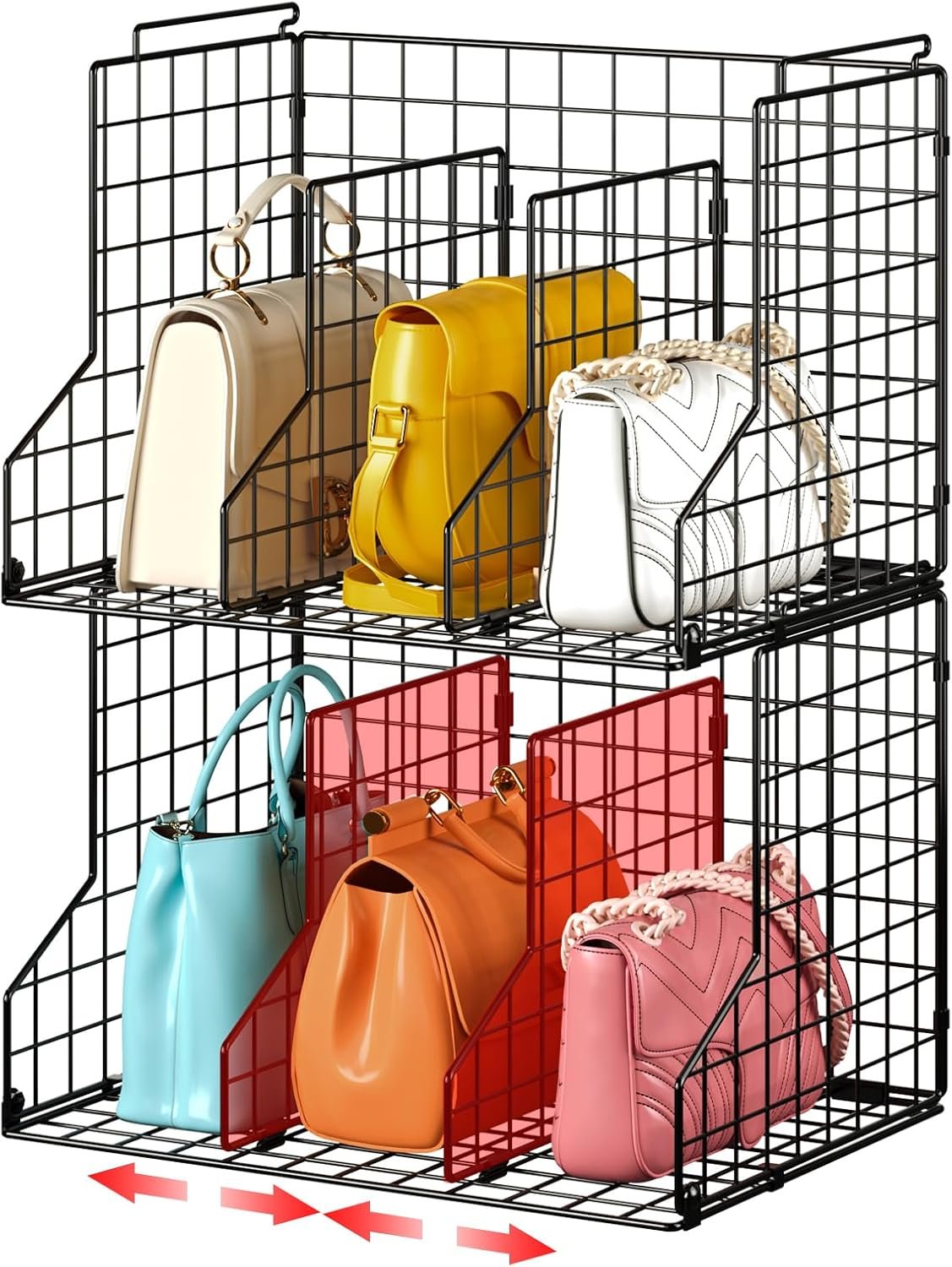 【Convenient and Quick】: With this wallet organizer, you can adjust the stacking layers and divider positions as needed, achieving a diverse bag storage arrangement. You can easily see the position of each bag and quickly find the bag you need. You can place it on the shelves of your wardrobe or coat rack for bag storage.