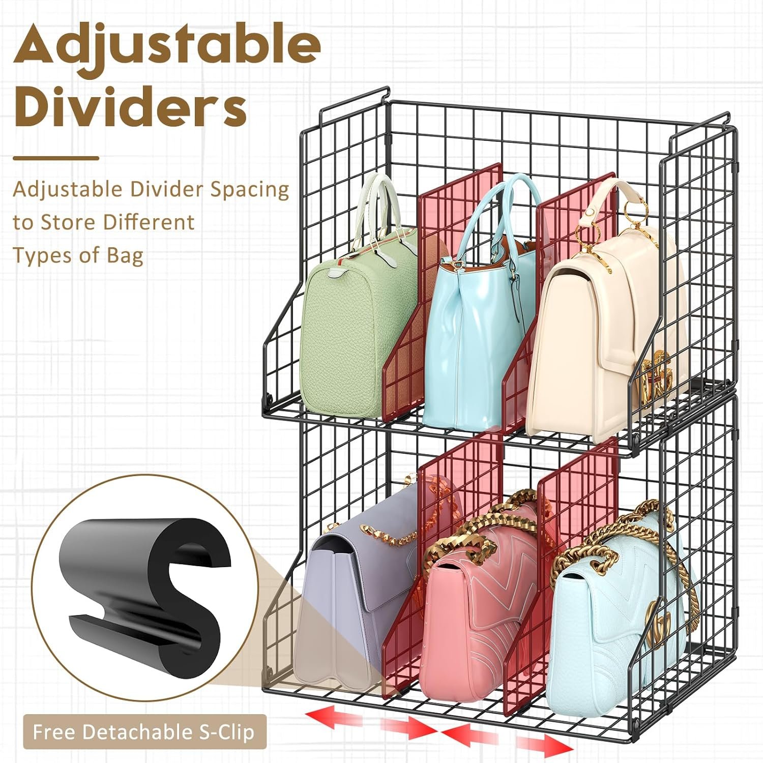 【With dividers】: 2 Dividers Per Basket, 4 Dividers In Total,You can use dividers to segment the space based on the sizes and shapes of different bags, ensuring that each bag has the appropriate storage area. This also prevents bags from being squeezed or colliding with each other, preserving the appearance and quality of the bags. The use of dividers allows bags to be neatly separated, making it easier for you to locate the bag you need.