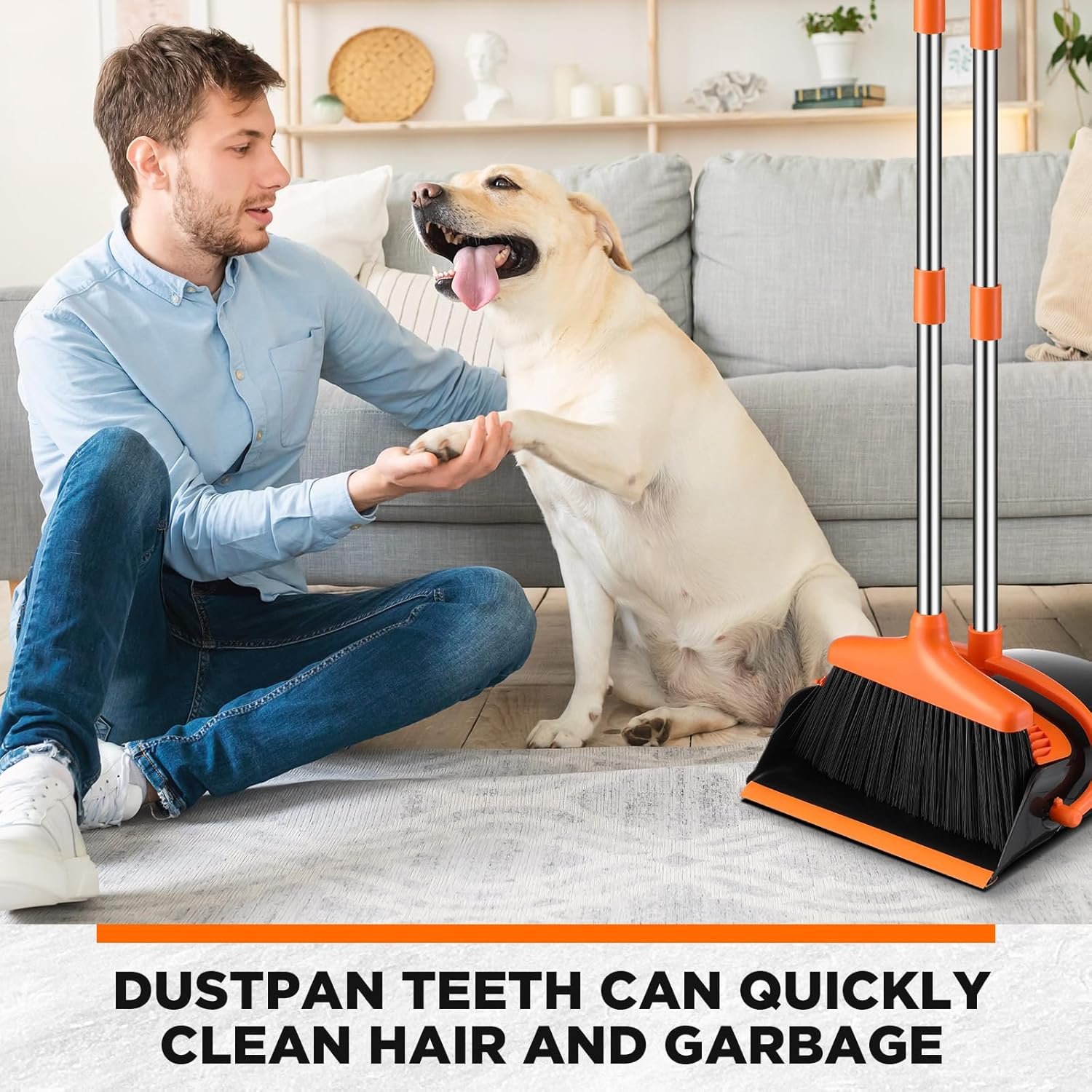 Cleaning Comb Teeth: this broom with dustpan set boasts a feature of curved comb teeth, which allows you to easily sift through tangled hair and tiny particles without using your fingers; Part of the house cleaning essentials, this cleaning broom and dustpan set makes cleaning easily
