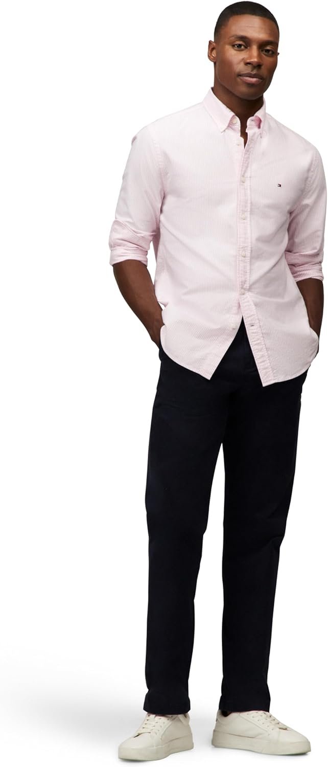 Introducing Tommy Hilfiger’s collection of men’s button-down shirts, meticulously crafted for style and comfort. Made from 100% cotton, these long-sleeve casual shirts offer an extra level of softness, making them the perfect choice for everyday wear in any weather. Tommy Hilfiger’s button-down shirts for men are constructed from premium organic cotton and feature detailed button-down collars, available in a range of solid colors, gingham, stripes, checks, and flannel designs. Comfortable and naturally breathable, these shirts are a versatile addition to any wardrobe. Designed with a regular fit that’s slightly slimmer through the chest and shoulders, these long-sleeve button-down shirts offer a casual yet refined look, complete with signature flag embroidery. Pair them effortlessly with your favorite Tommy Hilfiger shorts, pants, jeans, or jackets for versatile styling options suitable for any occasion, whether it’s a casual outing or a formal event. Ideal for daily wear, work, school, events, vacation, or sports, these men’s shirts are a must-have. Treat yourself or surprise a loved one with this timeless piece, perfect for fathers, brothers, boyfriends, husbands, sons, or friends. Elevate your everyday style with the unbeatable quality and sophistication of Tommy Hilfiger’s men’s button-down shirts.