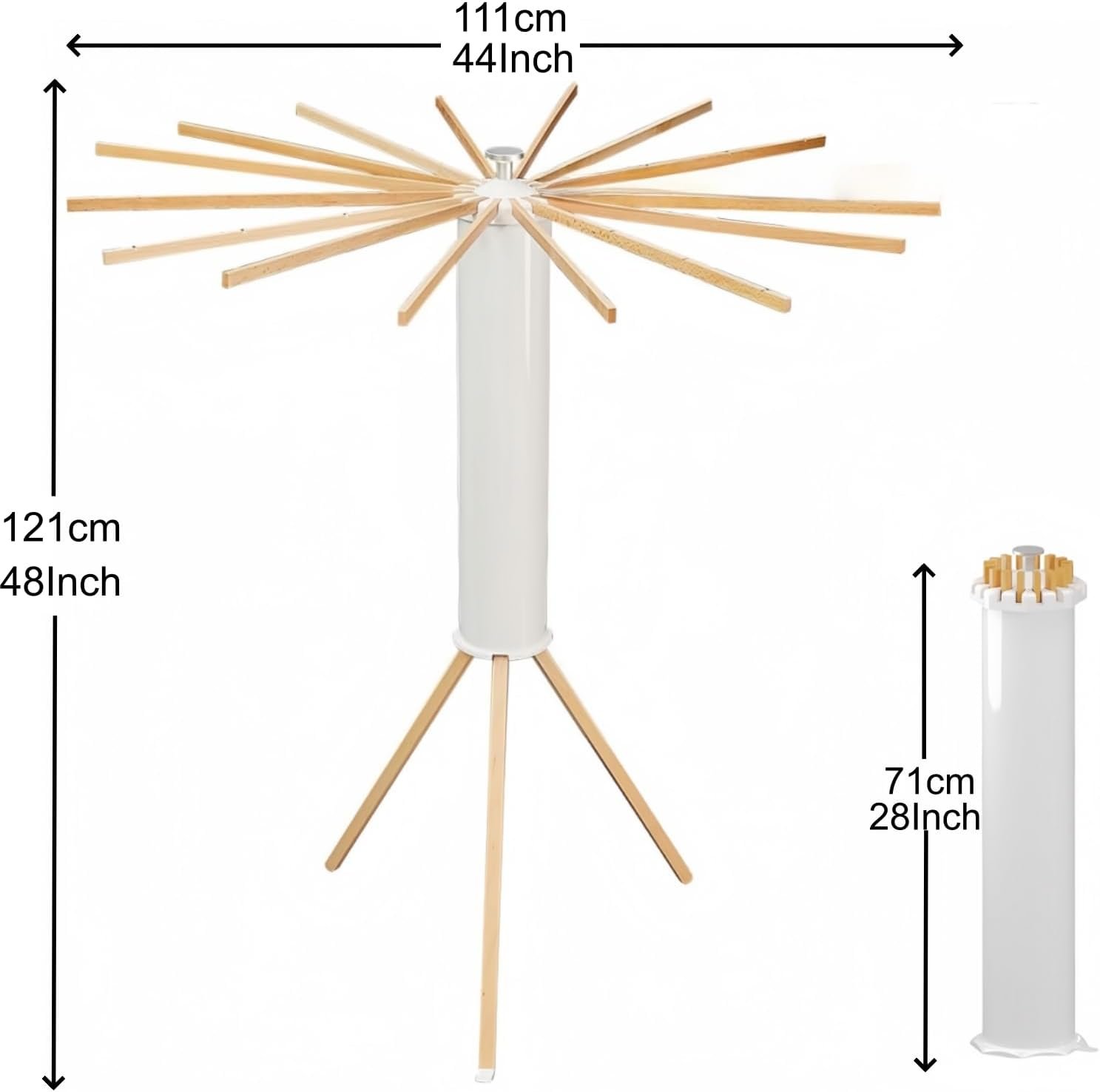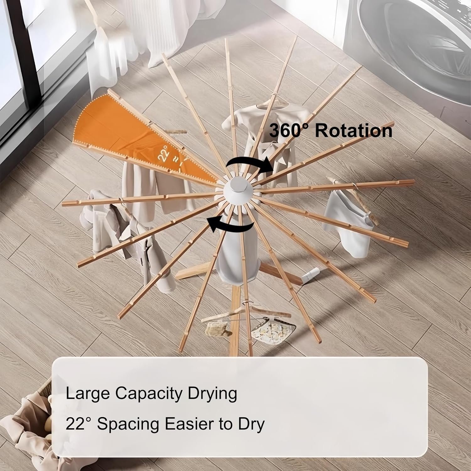 Extra Large Drying Capacity: With an umbrella-shaped large capacity and 16 drying rods, this rack maximizes drying space while allowing for proper ventilation. You can easily adjust the number of drying poles to meet your specific drying needs.