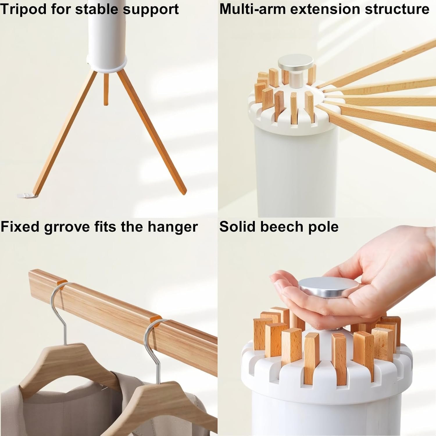 Sturdy & Durable: Crafted with solid beech poles, this rack is built to withstand the test of time, remaining resistant to aging, bending, and tilting. The foot pedal buckle design ensures easy locking and unfolding for hassle-free use.