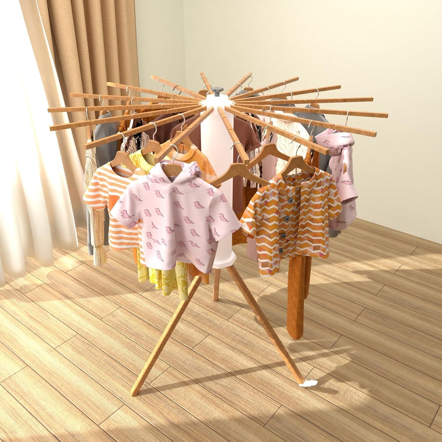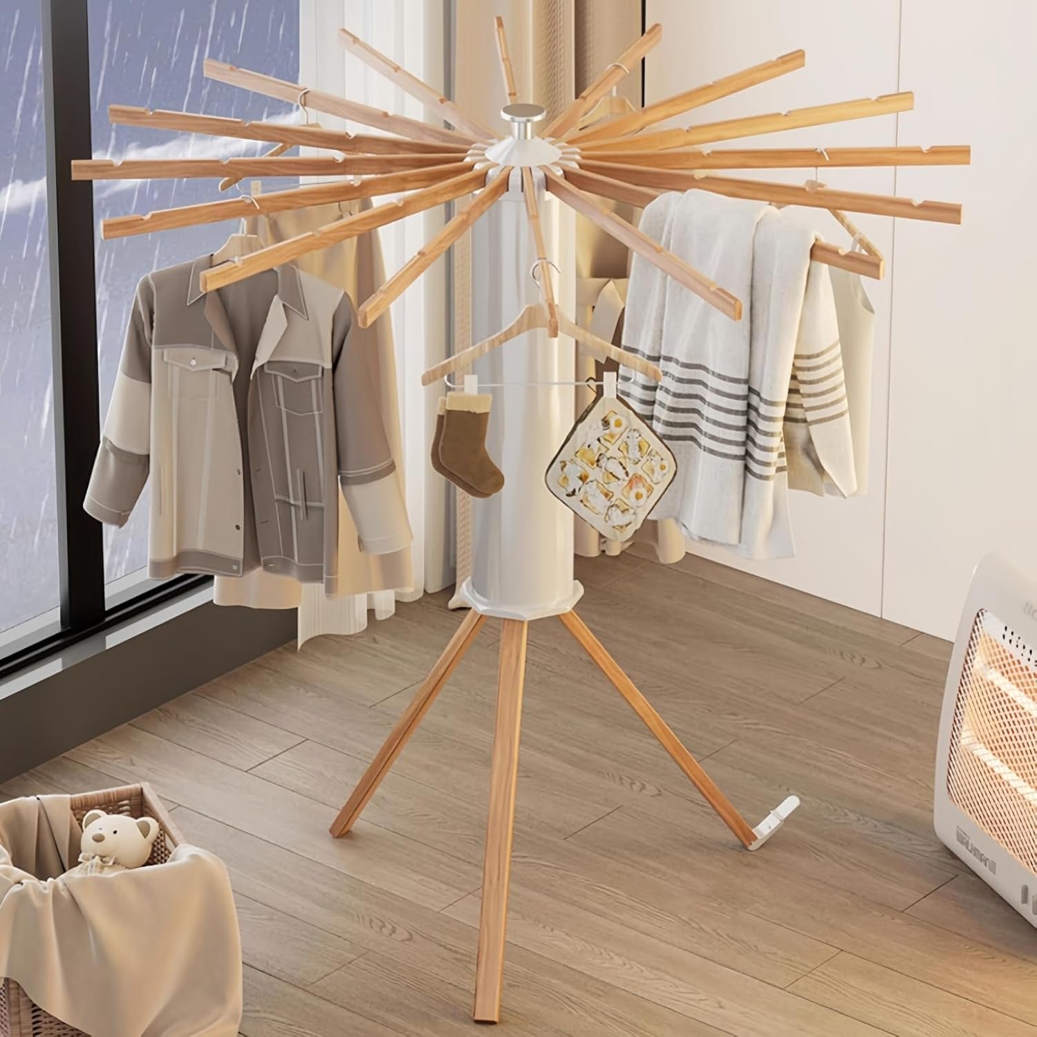 Stylish & Efficient: The Considerate, Versatile Tripod Clothes Drying Rack is a practical yet stylish must-have for every home; From laying flat for optimal airflow to hanging clothes for efficient drying.
