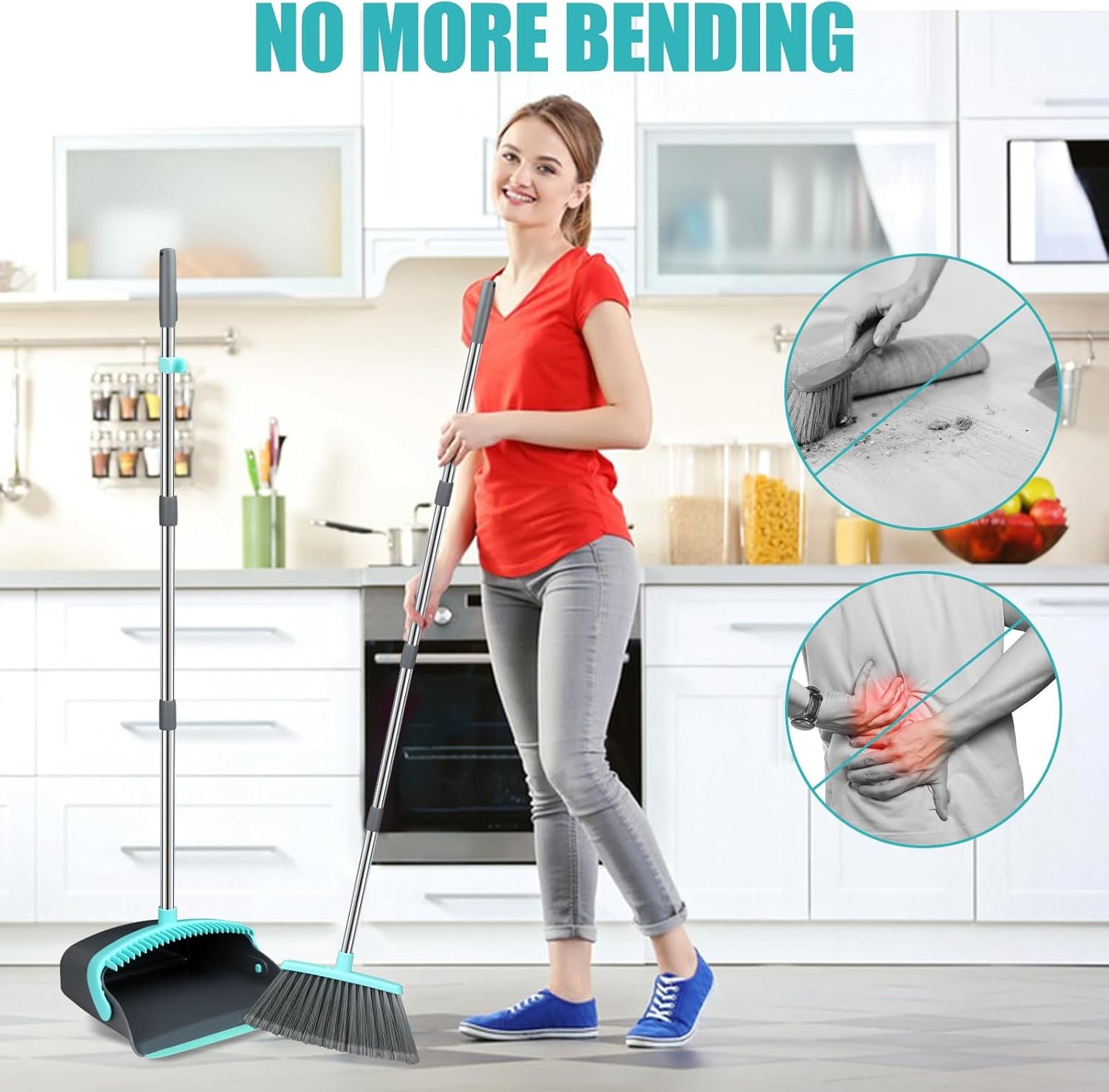 Heavy duty Broom Bristles: This broom and dustpan set comes with unique 5 layers of high quality bristles, which cleans the floor more efficiently. Suitable for indoor and outdoor use, for tile floors, garage floors, and hardwood floor.