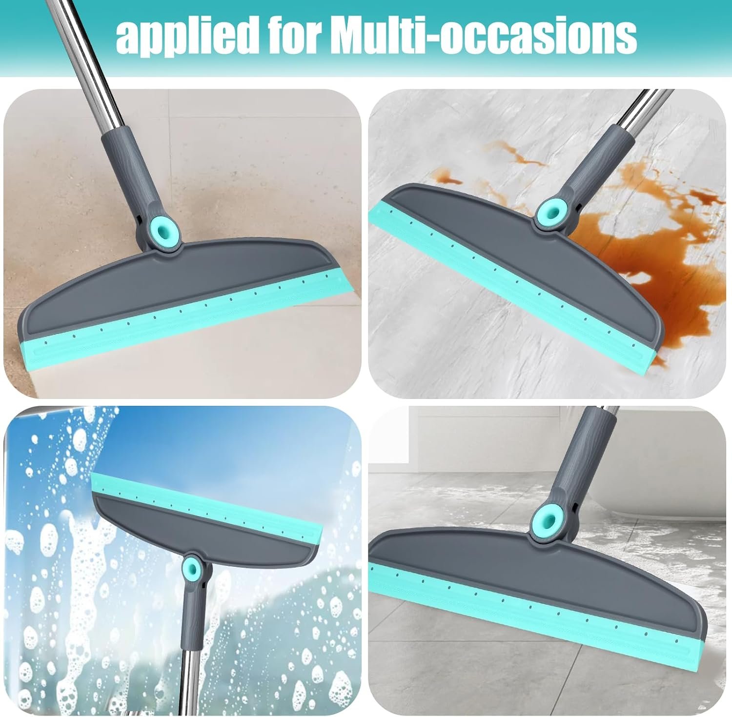 Two Brooms: Both brooms can be used for sweeping and can also be used for different occasions, the Silicone Broom can sweeps up every shard of broken glass, liquid spills, fine dust, coffee granules, sugar, hardwood, windows, shower walls.