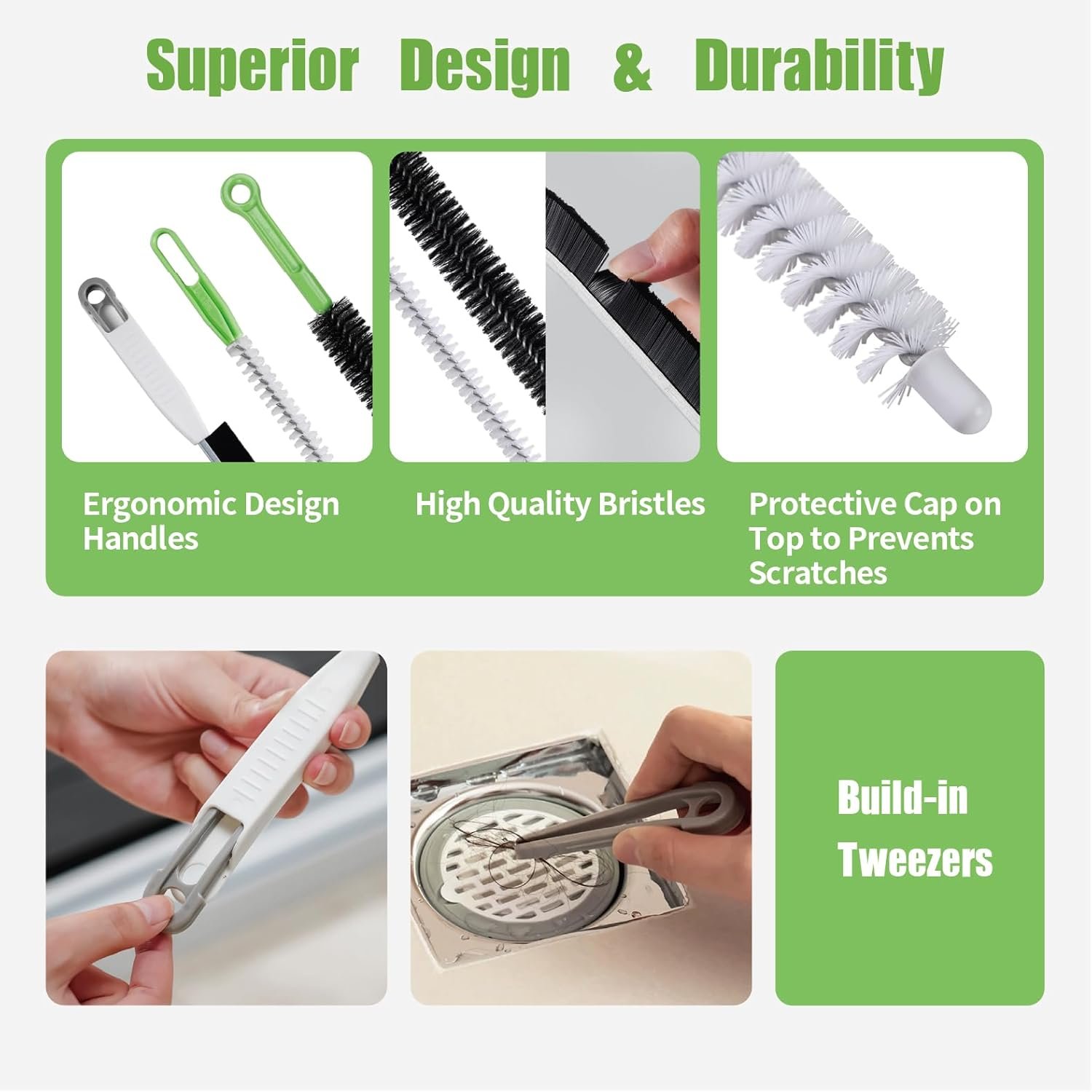 Versatile Cleaning : The thick and slim brushes adapt to different-sized pipes, while the crevice brush effectively cleans edges and hard-to-reach corners. Built-in tweezers make it easy to remove debris.