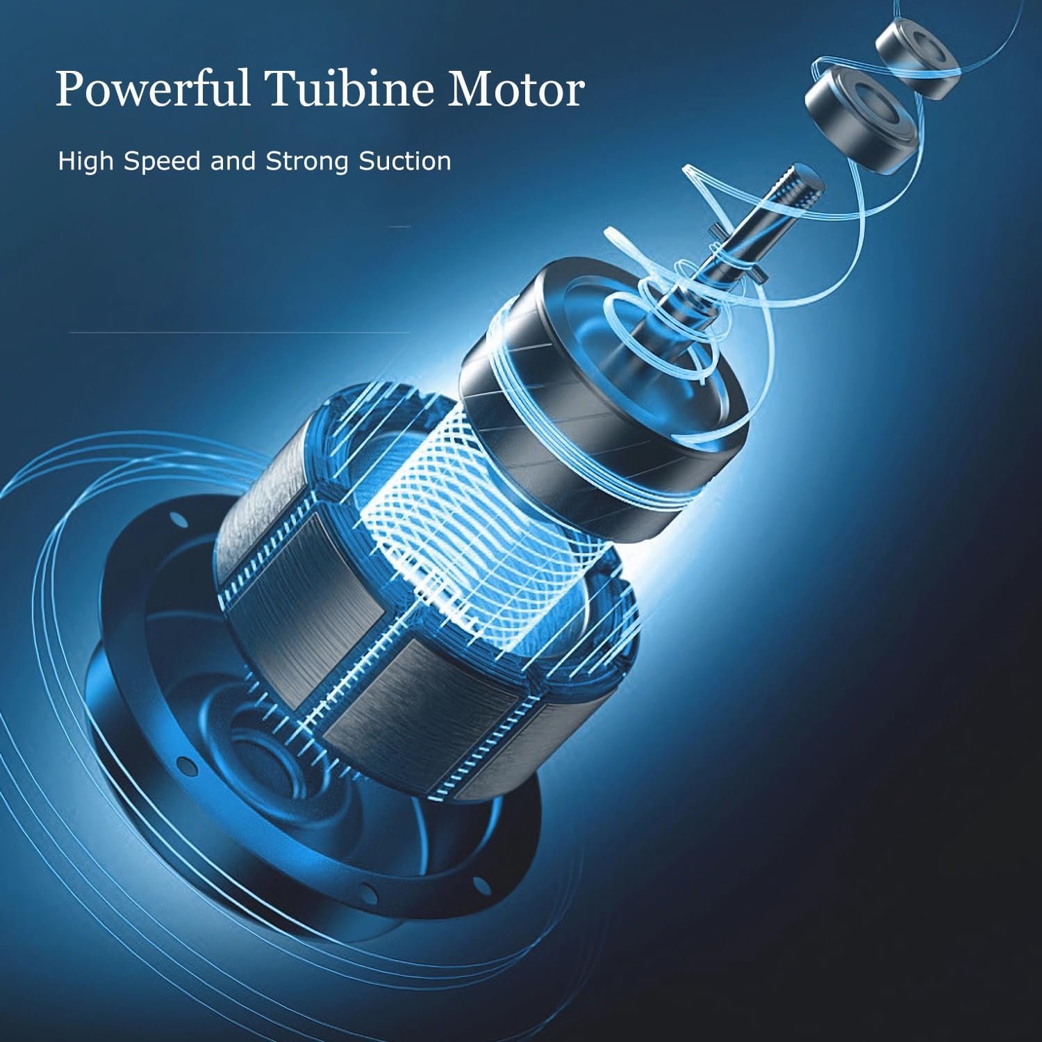 【Strong Suction】Powerful turbine motor high speed and strong suction, built-in strong motor, strong suction, ling service life high speed and low noise,Easili deal with dust and debris sand, hair cigarette butts,eqiopped with 2 types of suctiong nozzles.